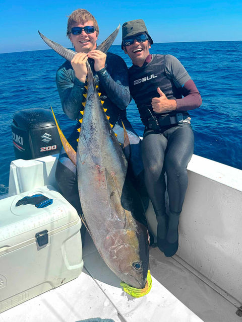 “Been wanting to spear a healthy Yellow Fin for years. When Raul finally started his own guiding I knew it was go time. On day 1, Raul called me “Wyatt Earp” because I had no patience. With his insight on day 3 Raul called me “Dalai Lama” as 150# fish swam by within reach, until my 200# class came in.